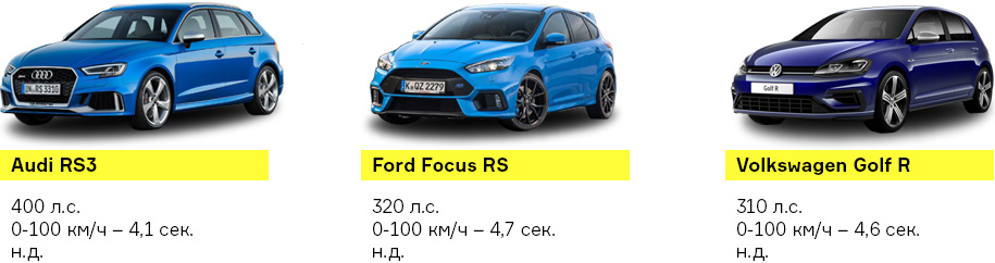 А ведь на этом список конкурентов Subaru WRX STI не заканчивается. Есть еще Ford Focus RS, Audi RS3 и Volkswagen Golf R. И они тоже быстрее «стихи».