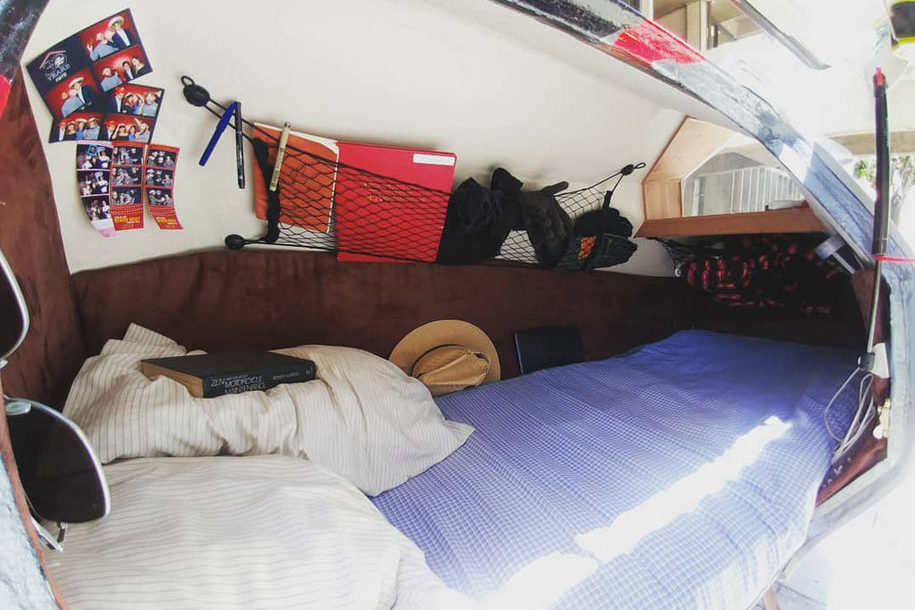 Студент из Калифорнии спроектировал кемпер Motohome. Жилой модуль устанавливается на мотоцикл, полностью заменяя его заднюю часть.