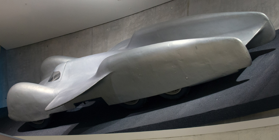 Претензии на звание быстрейшего в мире автомобиля в свое время были и у Mercedes. 750 километров в час – на такую скорость должен был выйти спроектированный Фердинандом Порше шестиколесный Mercedes-Benz T80, оснащенный 44,5-литровым двигателем Daimler-Benz DB 603 (модернизированная версия мотора истребителя Messerschmitt Bf 109). Построенный к 1939 году 3000-сильный автомобиль был полностью готов к испытаниям, но началась Вторая мировая война, которая поставила крест на установлении рекорда. К счастью, войну Т80 смог пережить (его хранили в железном контейнере в Австрии), но на попытку установки рекорда он так и не выехал. Сейчас Т80 является частью композиции музея Mercedes в Штутгарте.