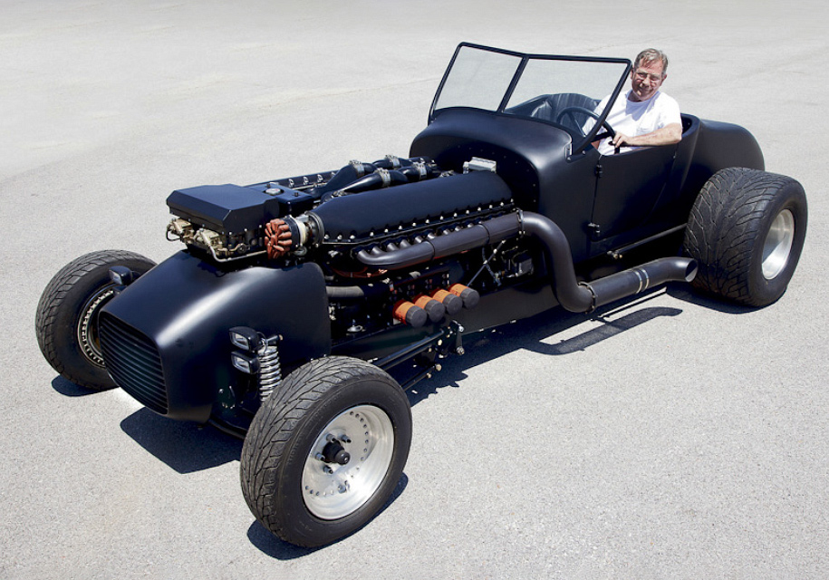 «В 50-е я увидел машину с авиационным двигателем. Тогда я пообещал себе, что и у меня когда-то будет такая же», – говорил в интервью Клифф Хикс, создатель хот-рода на полностью кастомной раме с 12-цилиндровым двигателем Allison за передней осью. Кузов машины был изготовлен из стеклопластика, множество компонентов было позаимствовано у автомобилей Ford. В итоге получился достаточно легкий и очень быстрый родстер – ведь отдача двигателя, который ставился на истребитель Lockheed P-38 Lightning, составляет более 1800 лошадиных сил!