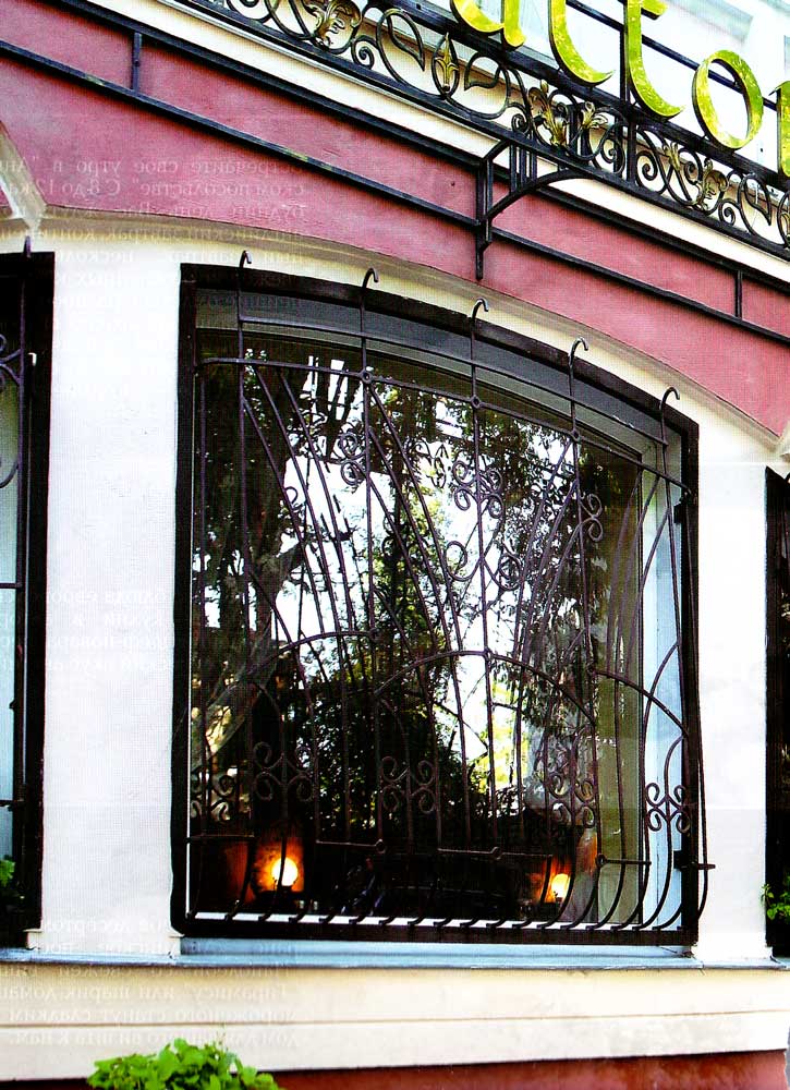 Декоративная решётка на окно может быть выполнена настолько оригинально, что не буде портить эстетический вид, а при сочетании с архитектурой и правильно подобранной цветовой гаммой смотреть оригинально и гармонично.