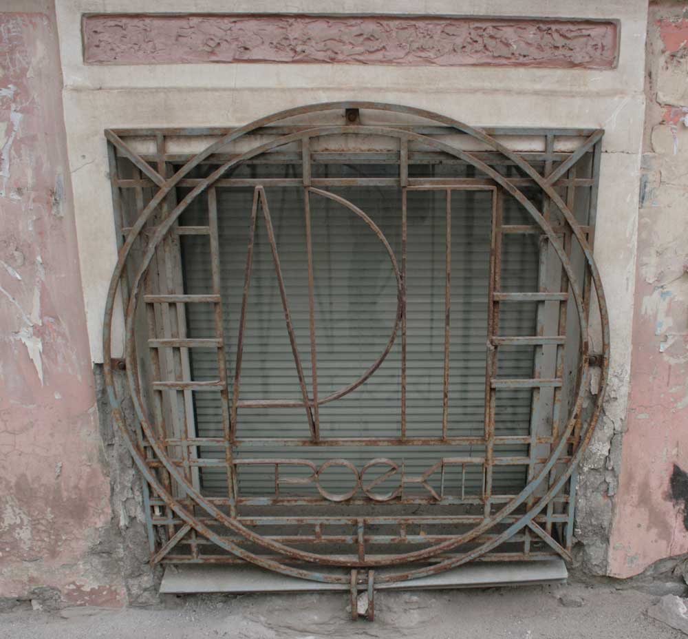 Металлическая декоративно-защитная решетка гармонирует с креплением вывески.
