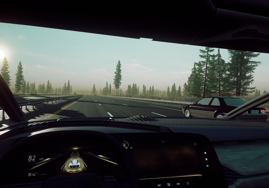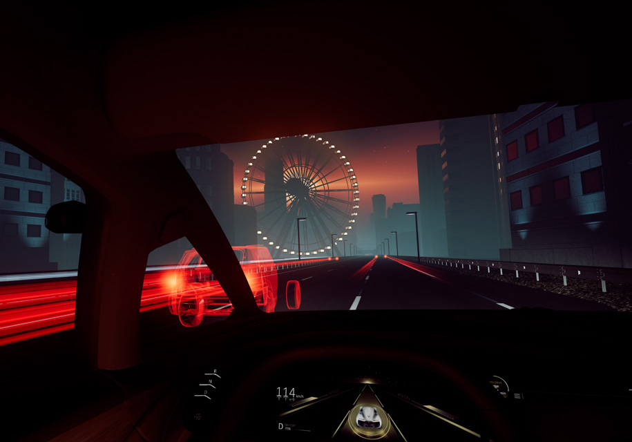 Надевая очки, вы переноситесь в виртуальный Renault Symbioz, который едет по городу из какой-то японской манги про будущее. Салон машины пустой, но вы-то слышите голоса реальных пассажиров, словно призраков. Слышите, проезжающие мимо машины, которые появляются и в виртуальном мире. Сериал «Черное зеркало».