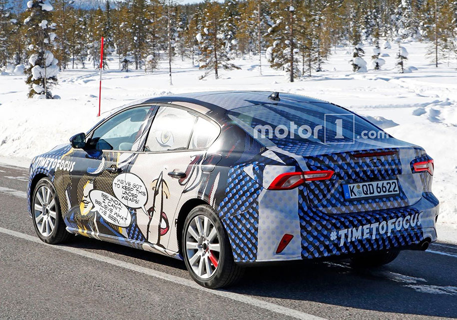 В Сети появились фотографии седана Ford Focus нового поколения, который сняли во время дорожных испытаний. Автомобиль получил необычный камуфляж, сделанный в виде комикса. Изображения опубликовало издание Motor1.