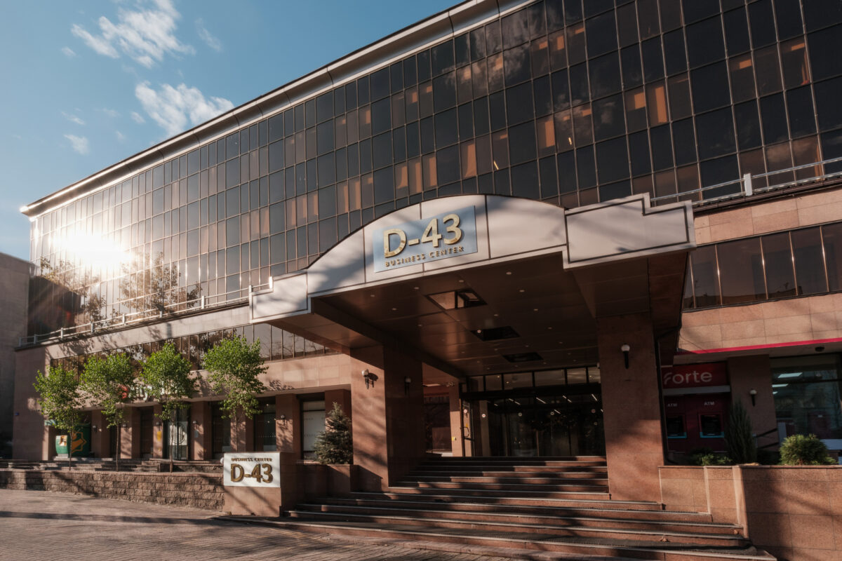 D43 — это современный объект в историческом и деловом центре Алматы (Медеуский район), расположенный вблизи станции метро «Алмалы». Общая площадь здания составляет 6,2 тыс. кв. м.