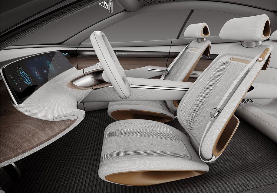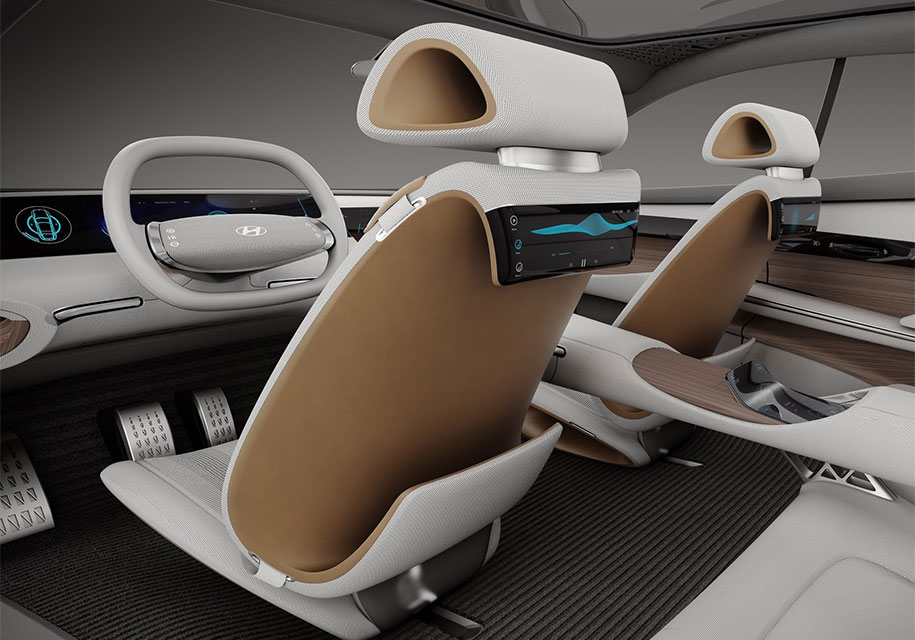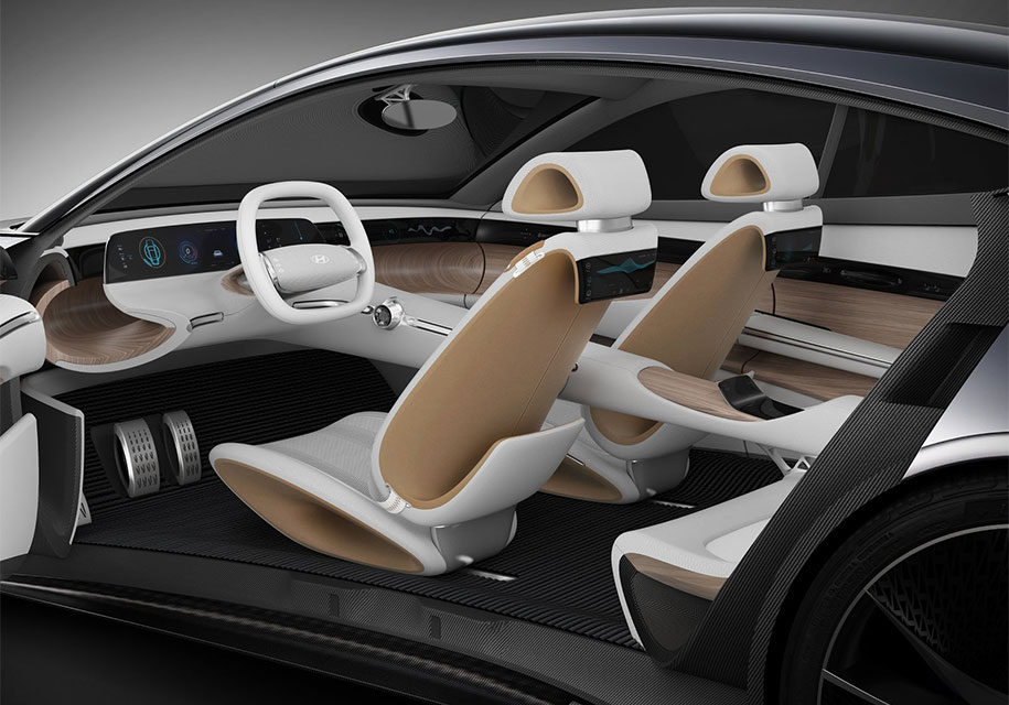 В интерьере Hyundai Le Fil Rouge установлены четыре отдельных кресла, а в отделке использовано натуральное дерево. Прототип получил несколько экраном. Один из них заменяет собой приборную панель, некоторые располагаются на дверях, а еще два установлены на спинках передних сидений.
