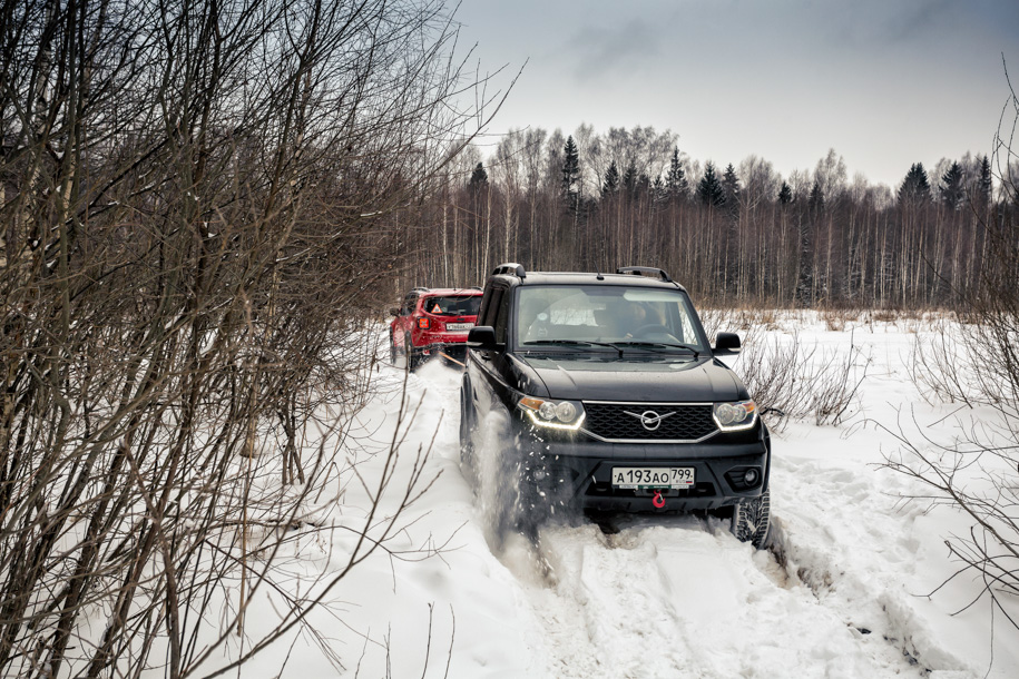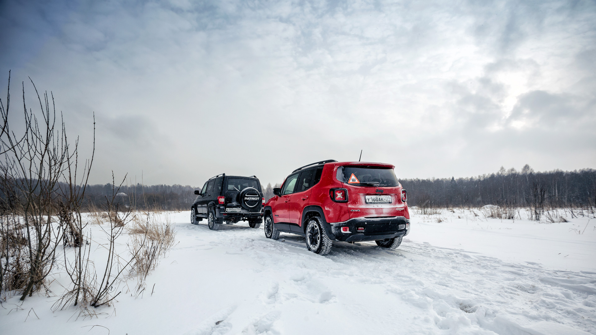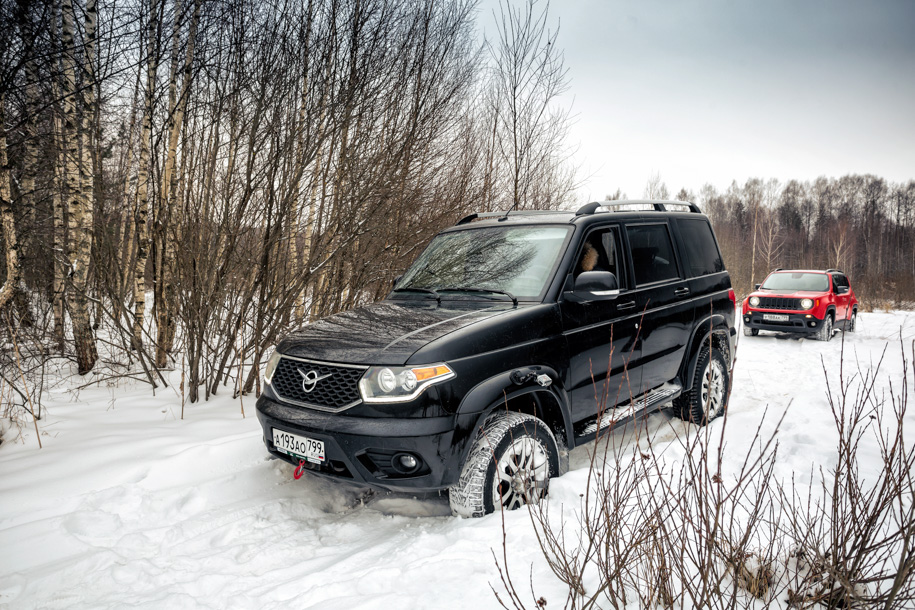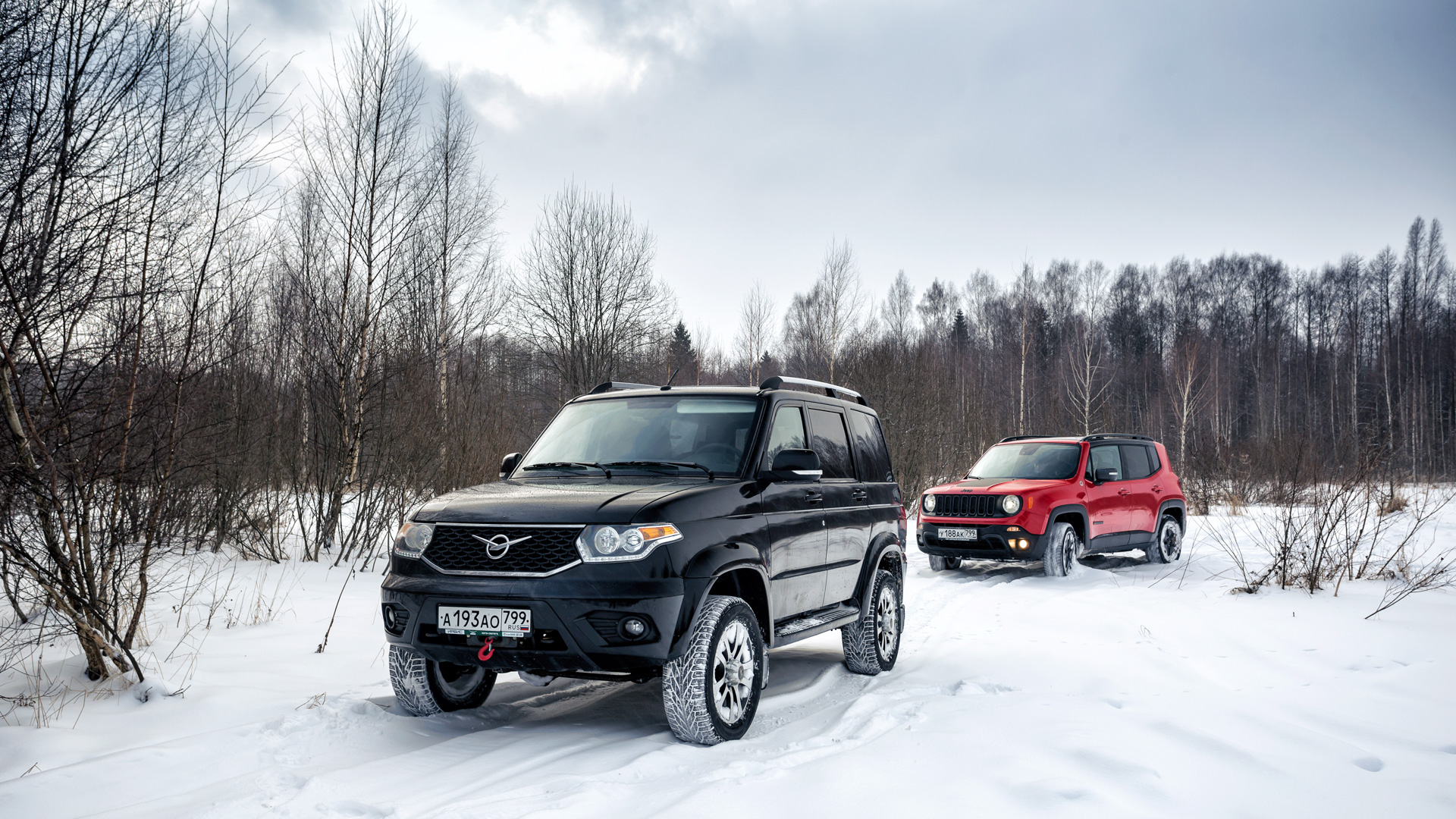Раз уж сравнение назрело, то мы взяли самые нетипичные машины оппонентов. Это современнейший из УАЗов, то есть максимально расфуфыренный «Патриот» с кожей, климатом и подогревом руля – внедорожник, который хотя бы пытается быть современным, – а также самую внедорожную версию самой асфальтовой модели Jeep: Renegade Trailhawk.
