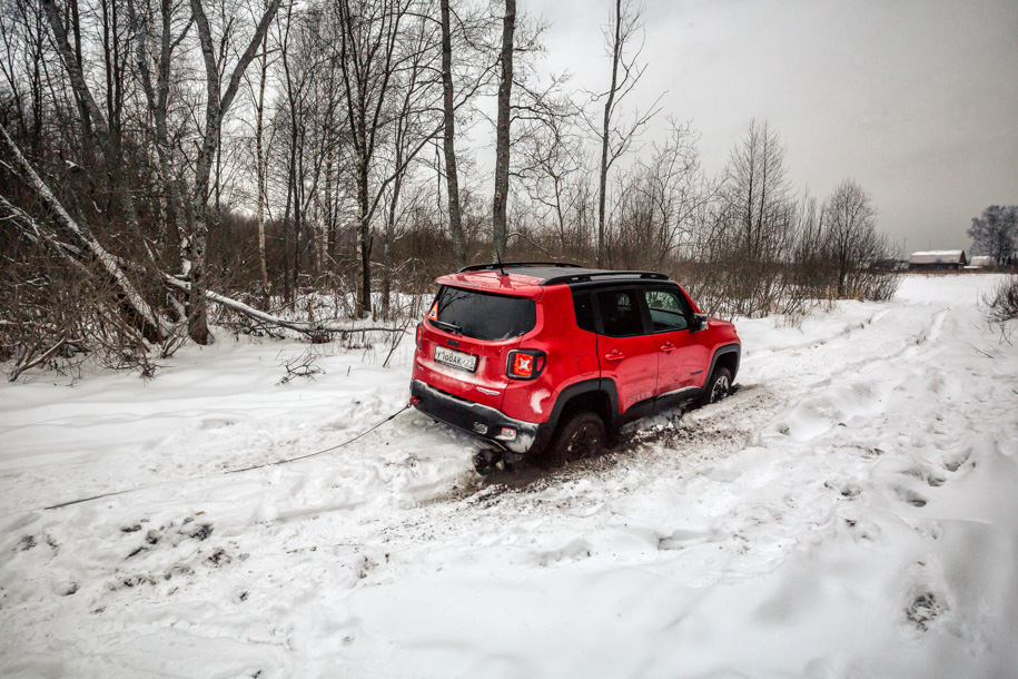 Вообще, местность вокруг шара — хрестоматийное российское бездорожье. Поля, грязюка, обочины с болотистыми кюветами. Короче говоря, абсолютная противоположность условиям, для которых создавался «Джип». Это машина для боковых уклонов, вывешиваний, бродов в конце концов. Поиск YouTube легко докажет, что почти никто не загоняет Renegade по пороги в грязь.