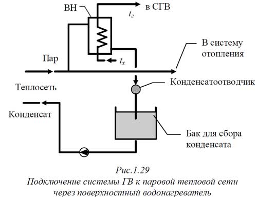 Схемы подключения систем горячего водоснабжения к паровым тепловым сетям