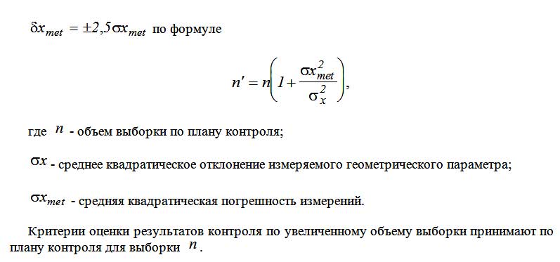 4.1. При выборочном контроле точность данного геометрического параметра проверяют по установленному плану контроля в выборке, состоящей из определенного количества объектов контроля (единиц продукции) в общем объеме партии (в потоке) продукции или в объеме выполненных работ.