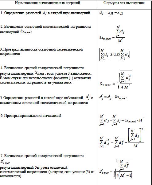6. При двойных наблюдениях близких по значению линейных размеров среднюю квадратическую и остаточную систематическую погрешность результата измерения определяют в соответствии с табл.3. При этом имеется в виду, что наблюдения являются равноточными в паре и между парами.