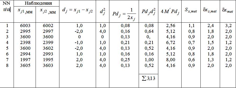 Пример. Произвести предварительную оценку точности измерений длинномером длины изделий при контроле точности их изготовления. Измерение длины каждого изделия в процессе контроля будет выполняться при числе наблюдений m = 2.
