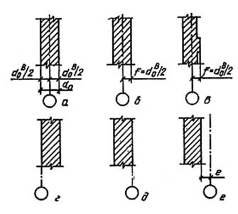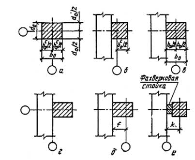 4.6. Внутренняя координационная плоскость наружных самонесущих и навесных стен должна совмещаться с координационной осью (черт. 9д) или смещаться на размер с учетом привязки несущих конструкций в плане и особенностей примыкания стен к вертикальным несущим конструкциям или перекрытиям (черт. 9е).