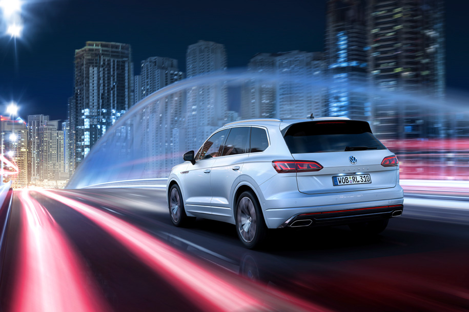 В «Фольксвагене» утверждают, что у новые фары светят на 100 метров дальше, чем ксенон прошлого «Туарега». Кроме того, у светотехники есть несколько специальных режимов работы, например, при плохой погоде, при обгоне и на бездорожье.
