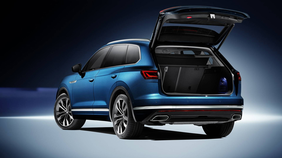 Новый VW Touareg выглядит в точности, как концепт-кар T-Prime GTE, который показали весной 2016 года на моторшоу в Пекине. Главное отличие – в размерах. Прототип был длинее пяти метров, а серийный автомобиль короче него почти на 20 сантиметров.