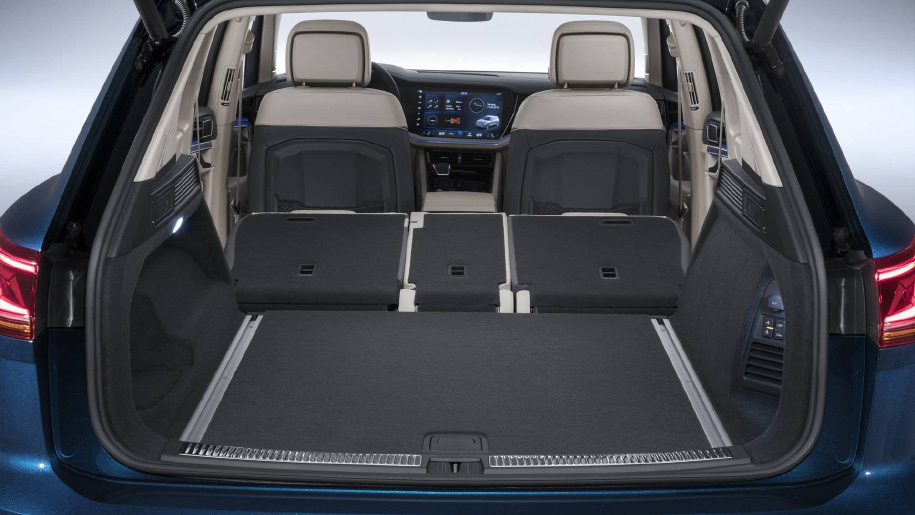 Габаритная длина «Туарега» третьего поколения составляет 4878 миллиметров, ширина – 1984 миллиметра, а высота – 1702 миллиметра. Таким образом, автомобиль получился на 77 миллиметров длиннее, на 44 миллиметра шире и на семь миллиметров ниже предшественника. Объем багажника увеличился на 113 литров – до 810 литров.