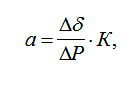 где ∆δ — устанавливаемое по графику приращение значения относительной осадки на осредняющей прямой, соответствующее интервалу давления ∆Р, кгс/см²;