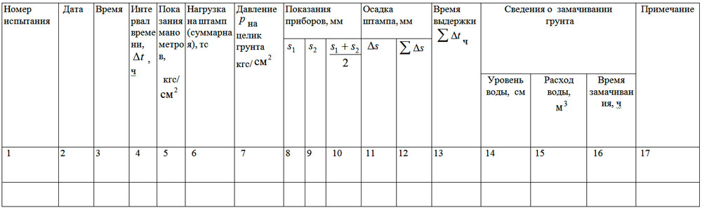 3.5. После монтажа установки и измерительной системы надлежит установить показания приборов на нулевые деления, записать их в журнале полевых испытаний (см. приложение 3) как исходные для последующих отсчетов в процессе проведения испытания.