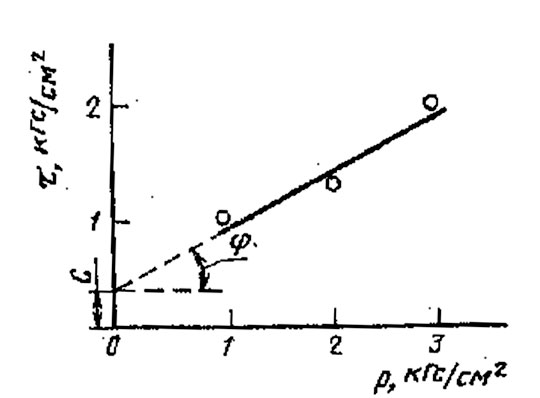 5.1. Для определения сопротивления грунта срезу τ при каждом нормальном давлении p необходимо построить график зависимости