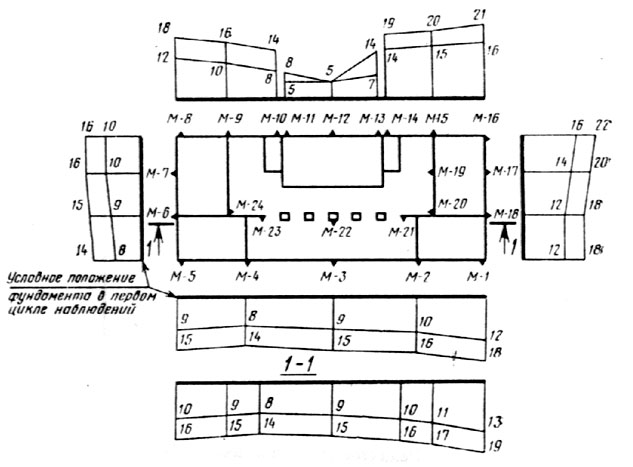 1.4. Наблюдения за деформациями оснований фундаментов следует производить в следующей последовательности: