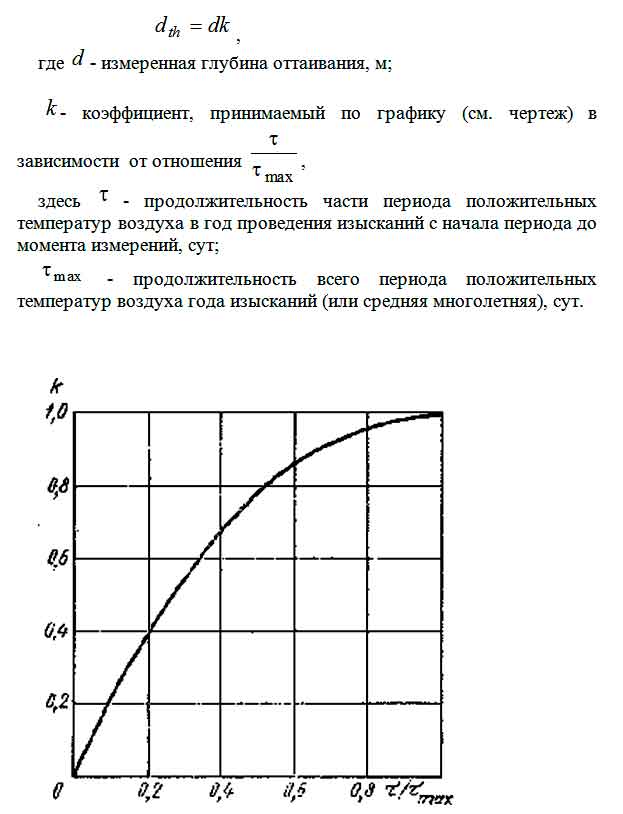 2.3.1. Глубину сезонного оттаивания оттаивания dth, м, в каждой точке наблюдений следует определять по формуле