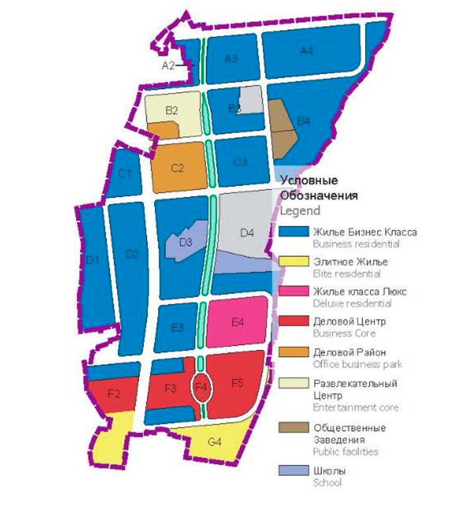 Здесь будут построены жилые дома бизнес — и элит — класса с подземными автостоянками, бизнес-парк с многофункциональными деловыми комплексами, а также объекты социально-бытового значения.