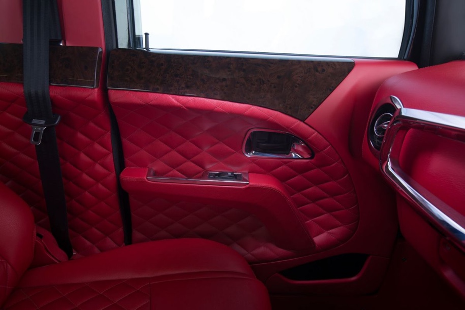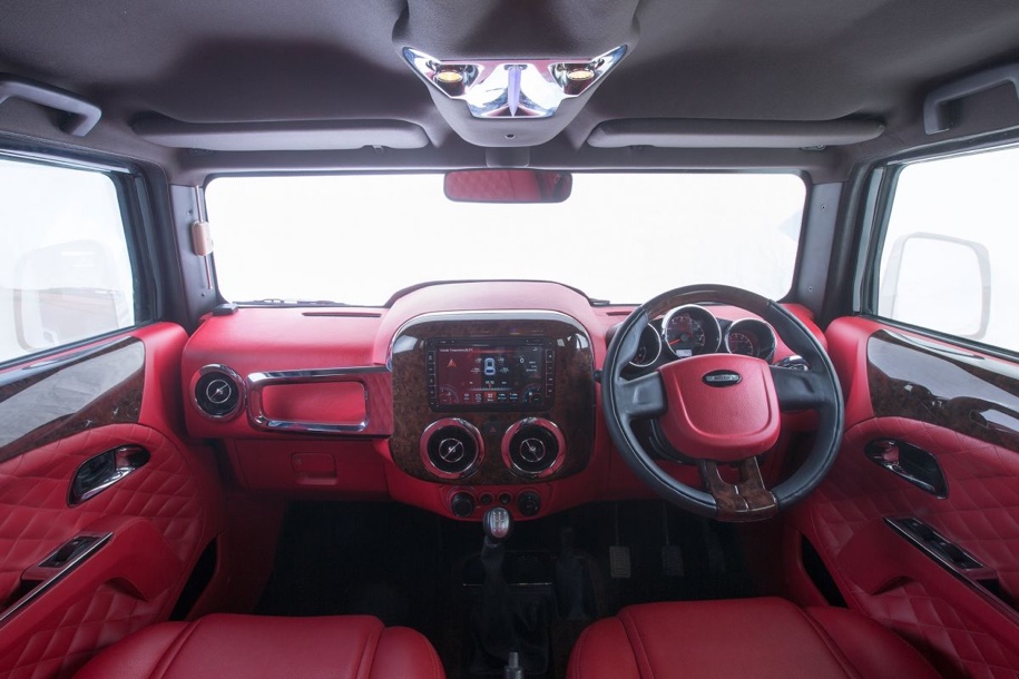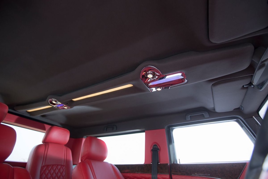 Помимо внешности, внедорожнику также изменили салон: установили новые дверные панели с отделкой из кожи, на крыше смонтировали светодиодную подсветку, стилизовали центральную консоль и укомплектовали раздельными задними креслами.
