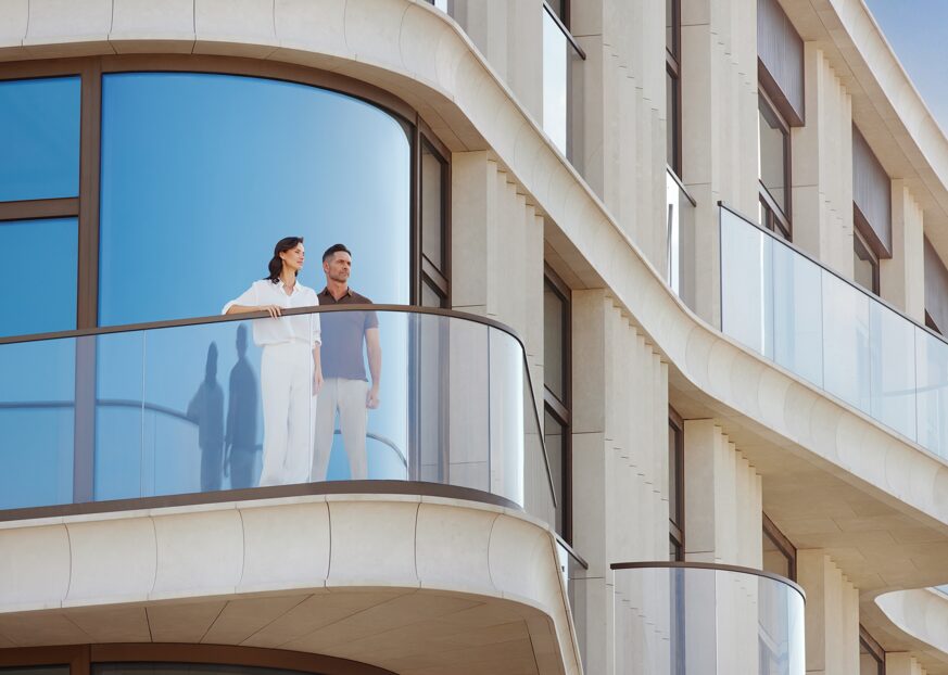 То, что дом построен, раскрыло редкую возможность подняться в готовую квартиру и воочию оценить панорамы Кремля, храмов Василия Блаженного и Христа Спасителя, всего исторического центра Москвы — архитектура проекта подчинена идее создания лучших видов. Также дом выделяется особой пластикой фасадов, созданной с помощью моллированных — изогнутых — окон и округлённых балконов.