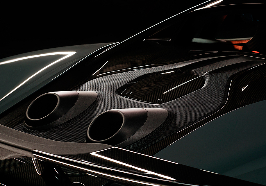 По сравнению с обычным купе McLaren 570S экстремальный вариант стал на 74 миллиметра длиннее – около 23 процентов деталей конструкции суперкара теперь другие. Автомобиль получил карбоновый диффузор и новую «короткую» выпускную систему в стиле гиперкара Senna с выведенными наверх выхлопными трубами.