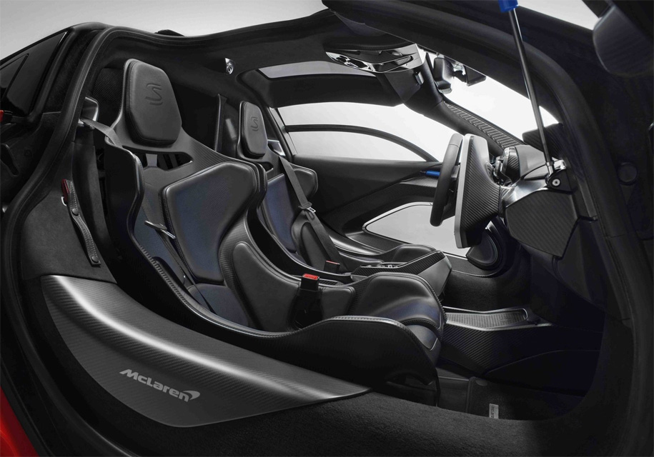 У этого купе нет багажного отсека спереди (у Senna есть только место под гоночные шлемы за креслами) – туда были перемещены радиаторы трансмиссии, а на том месте, где они находятся на других моделях марки – за фарами – теперь располагаются специальные аэродинамические каналы с управляемыми электроникой заслонками.