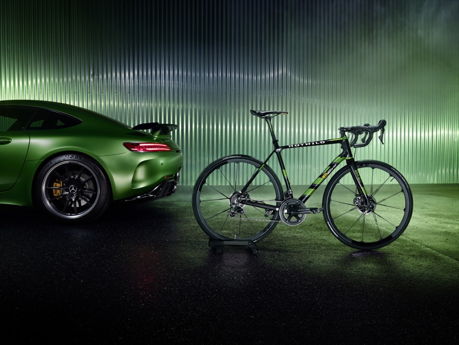 Компания Mercedes-Benz представила лимитированную серию велосипедов, посвященную суперкару Mercedes-AMG GT R и 50-летнему юбилею AMG. Цена шоссера — 7109 евро (490 тысяч рублей по текущему курсу; для сравнения, Renault Logan стоит от 499 тысяч). Эта цифра должна напомнить о времени, за которое спорткупе проехало Нюрбургринг – 7 минут 10,9 секунды.