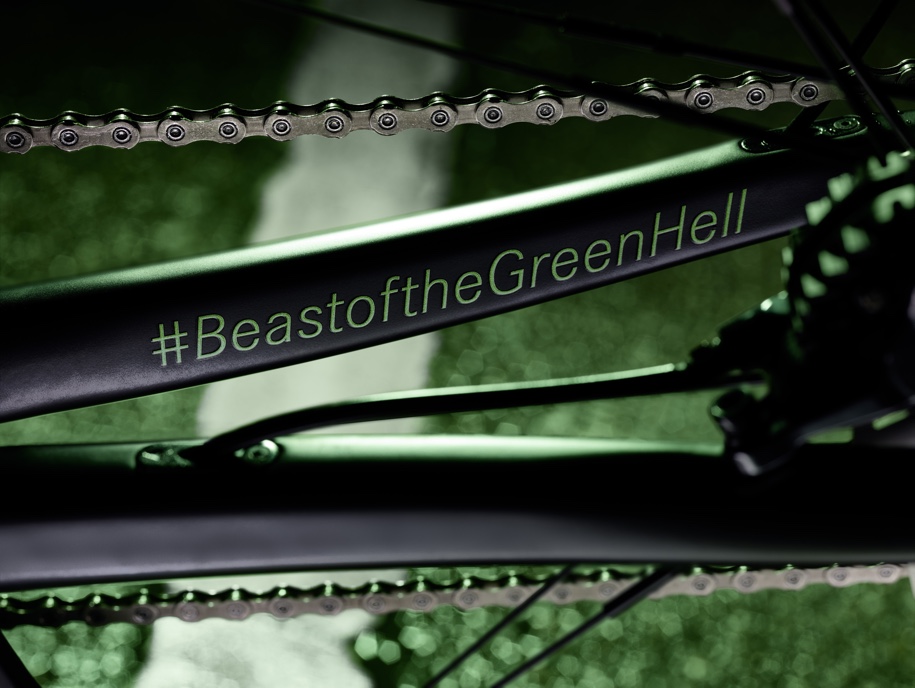 В основу велосипеда, названного R.S2 Limited Edition Beast of the Green Hell, ляжет рама из углеродного волокна. Из этого материала также будут сделаны седло, подседельный штырь, вынос руля, 29-дюймовые колесные диски Crankbrothers и держатель для бутылки. Велосипед укомплектуют топовыми компонентами Shimano Dura Ace и профессиональными гоночными покрышками Continental Grand Prix 4000.