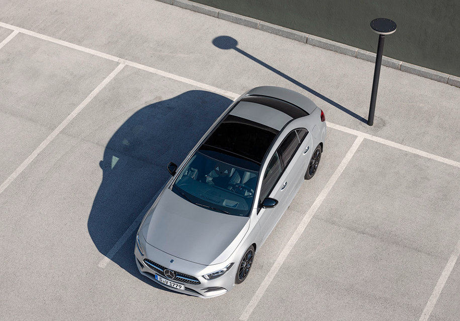 Как говорят в компании, новый седан A-Class имеет наименьший коэффициент аэродинамического сопротивления среди всех серийных машин – 0.22 (при этом у хэтчбека этот показатель достигает 0.25). При разработке машины использовался аэродинамический тоннель в Зиндельфингене: почти все днище четырехдверки закрыто щитом, а аэродинамическая эффективность просчитывалась даже для дисков и шин.