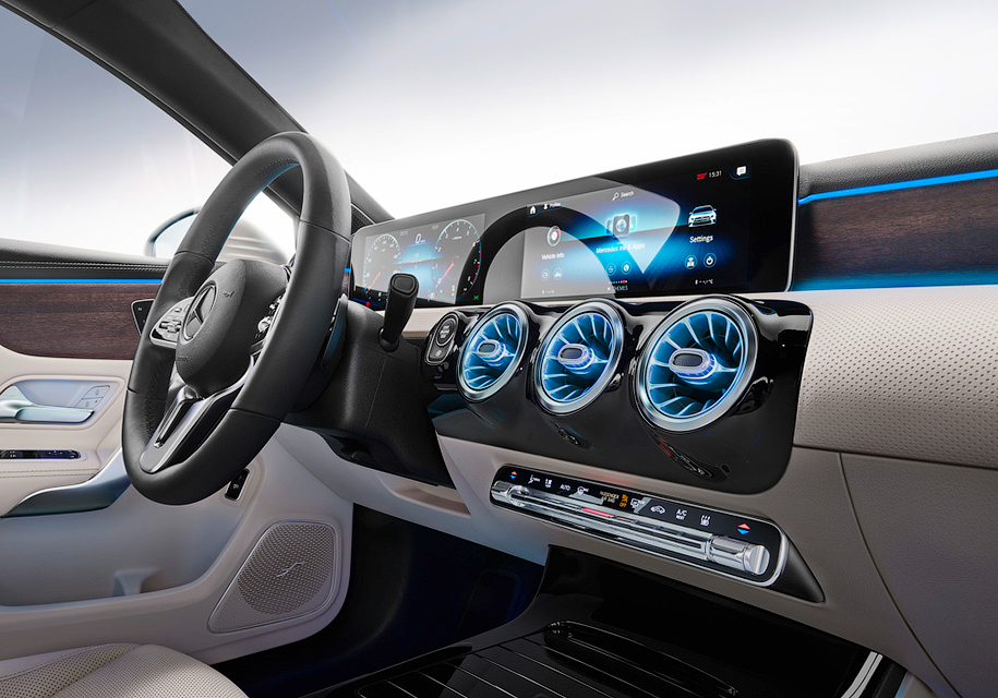 Седан уже в базе предлагается с электронной приборкой. В стандартном оснащении она семидюймовая, а в топовом – 10,25-дюймовая. Такого же размера в этом случае будет и экран мультимедийного комплекса MBUX.