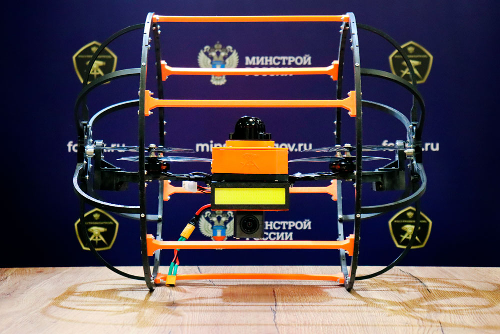 Квадрокоптер «Квадрига» способен не только перемещаться на необходимый для проведения осмотра уровень, но и преодолевать различные помехи и барьеры на земле. Это стало возможным за счёт того, что при сохранении основного функционала летательного аппарата, система была дополнена защитной конструкцией, позволяющей работать в труднодоступных местах, свободно перемещаться по узким проходам, лестничным маршам, а также преодолевать различные препятствия на строительной площадке.