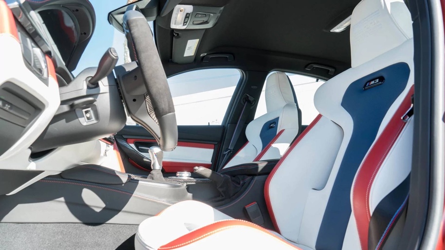 Интерьер особого M3 выполнен в цветах американского флага. Для отделки салона использовалась кожа, алькантара и углеродное волокно.