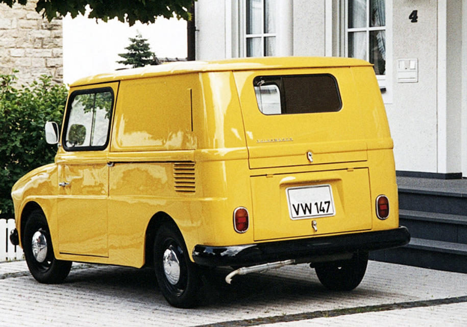 О маленьком почтовом фургончике Volkswagen Typ 147 мы ранее уже рассказывали нашим читателям. 6139 желтых машин, сделанных по заказу Deutsche Bundespost, были созданы на базе кабриолета Beetle и купе Karmann Ghia в период с 1964 по 1974 год. Из них примерно 200 автомобилей, в конечном итоге, перешли в частные владения. Несколько «Фольксвагенов» также закупила почта Швейцарии, плюс пара Fridolin были переданы компании Lufthansa.