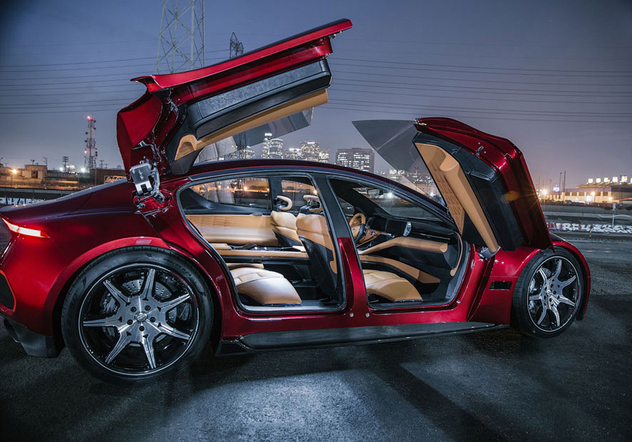 Седан Fisker EMotion построен на карбон-алюминиевой платформе и оснащен дверьми-бабочками – передние и задние двери поднимаются вверх. Длина модели составляет 5085 миллиметров, высота — 1465, а колесная база равна 3018 миллиметрам.