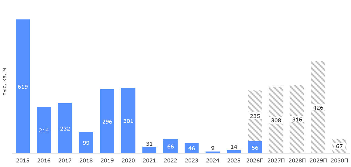 Динамика ввода офисных площадей в Дубае, 2015—2029 гг.