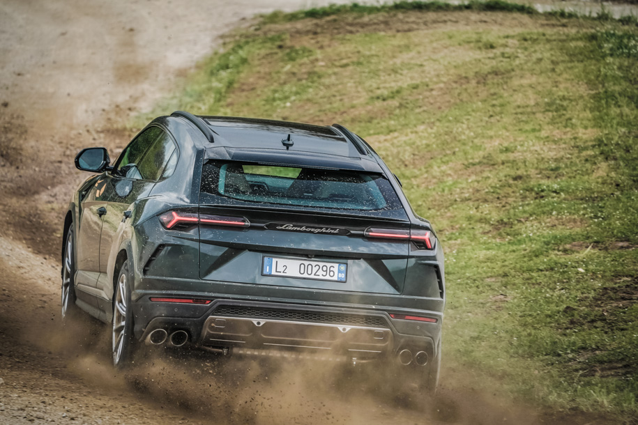 Амортизаторы расслабляются, пневмобаллоны поднимают кузов (максимальный клиренс в 248 миллиметров – больше, чем у Audi Q7), 48-вольтовые электромоторы перестают скручивать стабилизаторы, фактически размыкая их – и вот Urus, который только что на треке был крепко сжатым, словно кулак перед ударом, вдруг начинает носиться по канавам и буеракам с азартом, достойным пляжного багги!