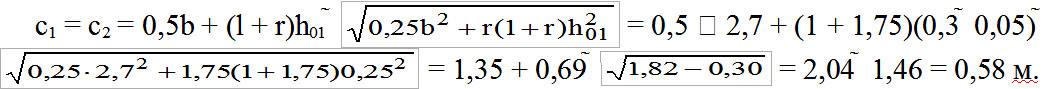 Назначаем вылеты нижней ступени с1 = с2 = 0,45 м □ 0,58 м и соответственно размеры второй ступени фундамента: