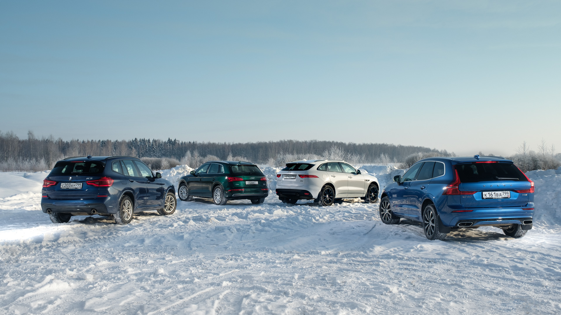 Именно поэтому четыре самых свежих автомобиля своего сегмента – BMW X3, Volvo XC60, Audi Q5 и Jaguar F-Pace – на наше сострадание сегодня могут даже не рассчитывать.