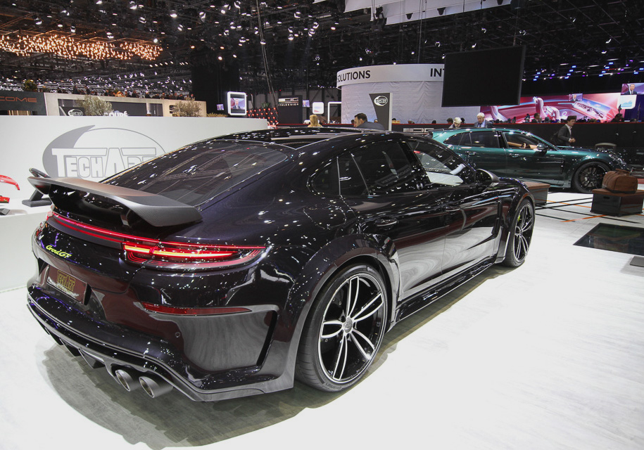 Panamera Turbo от ателье TechArt получило форсированный с 550 до 630 сил мотор. Он позволяет автомобилю набирать «сотню» за 3,4 секунды, а 200 километров в час – за 8,3 секунды. Злой выпуск, расширенные колесные арки и куча карбона – тоже есть.