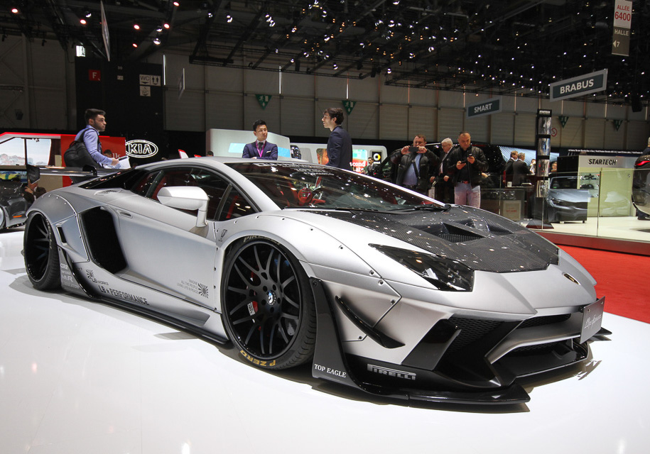 Еще один проект ателье построен на базе Lamborgini Aventador Roadster. Согласно фирменному стилю Liberty Walk, машина занижена, оснащена мегаагрессивным карбоновым обвесом с расширенными колесными арками и задним антикрылом. Мотор остался таким же, как у базовой машины – 6,5-литровый атмосферник V12 мощностью 740 лошадиных сил.