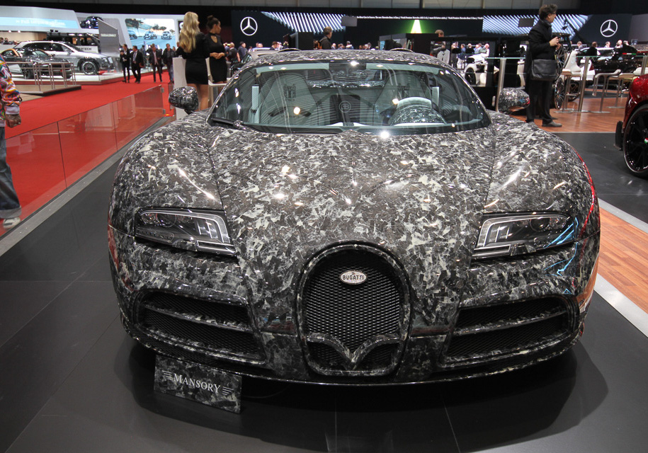 Любители необычного тюнинга – Mansory – показали в Женеве Bugatti Veyron с необычным кузовом. На самом деле автомобиль оснащен полностью карбоновыми кузовными панелями, которые покрыты специальным материалом под названием «Marble Collage» («мраморный коллаж»). Он должен создавать ощущение того, что машина выполнена из натурального камня. Кстати, если приглядеться, то у «Вейрона» можно заметить новый маленький спойлер, которые должен увеличить прижимную силу.