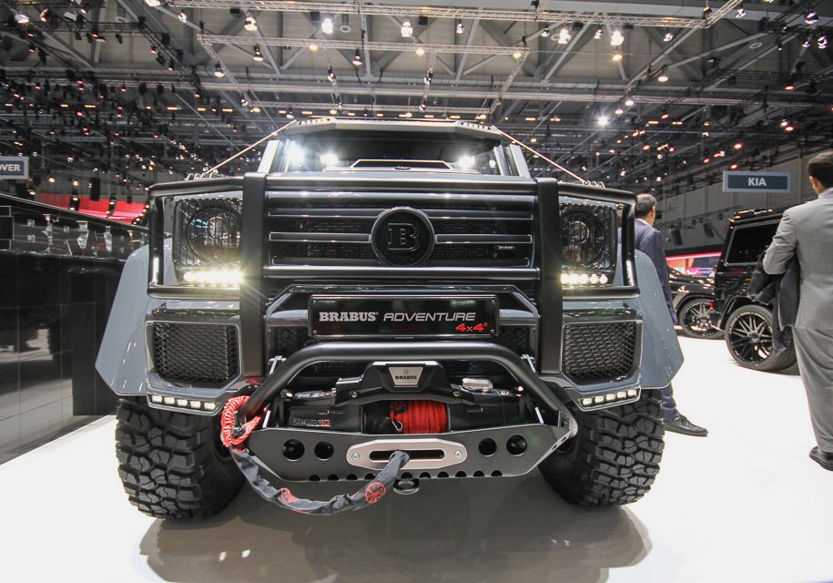 Этот автомобиль называется Brabus 550 Adventure 4×4². Внедорожник оснастили «кенгурятником» с защитой фар, лебедкой, дополнительной светотехникой на крыше и запасным колесом на двери багажника. Мощность турбомотора V8 возросла с 422 до 550 сил. «Сотню» этот монстр набирает за 6,7 секунды. Максималка из-за внедорожных шин ограничена 210 километрами в час.