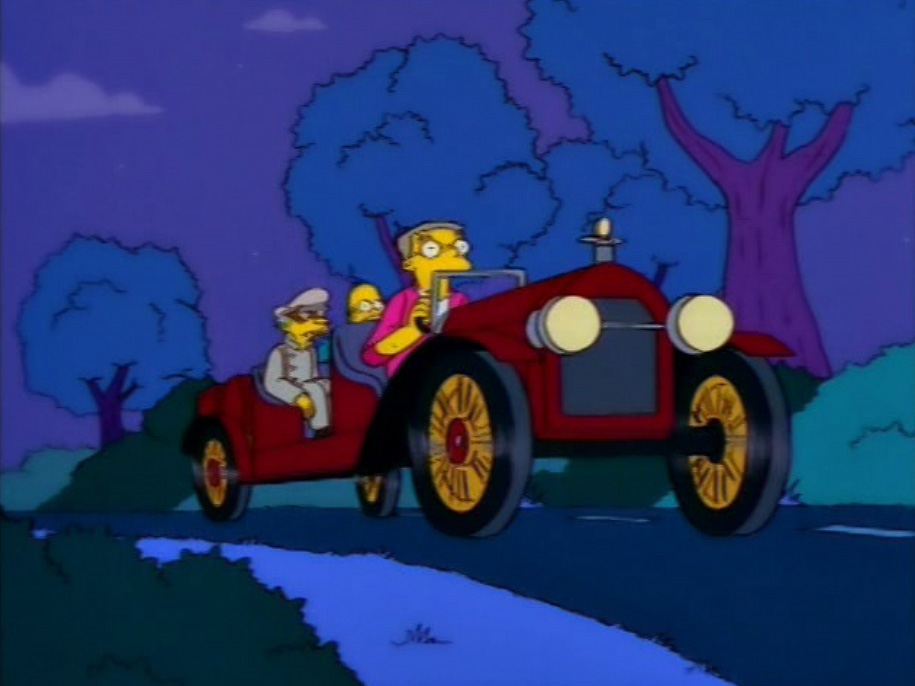 Хотя у реального Stutz Bearcat 1912 года заднего ряда сидений нет, мультимиллиардер мистер Бернс наверняка мог себе позволить особую версию этого редкого автомобиля, который на аукционах Sotheby’s тянет на 400 тысяч долларов. Увидеть Bearcat в «Симпсонах» можно в 20 серии 9 сезона. Кроме Stutz, в гараже Монтгомери Бернса есть и другие классические автомобили – например, Duesenberg Model J, Ford Model T и Ford Quadricycle.