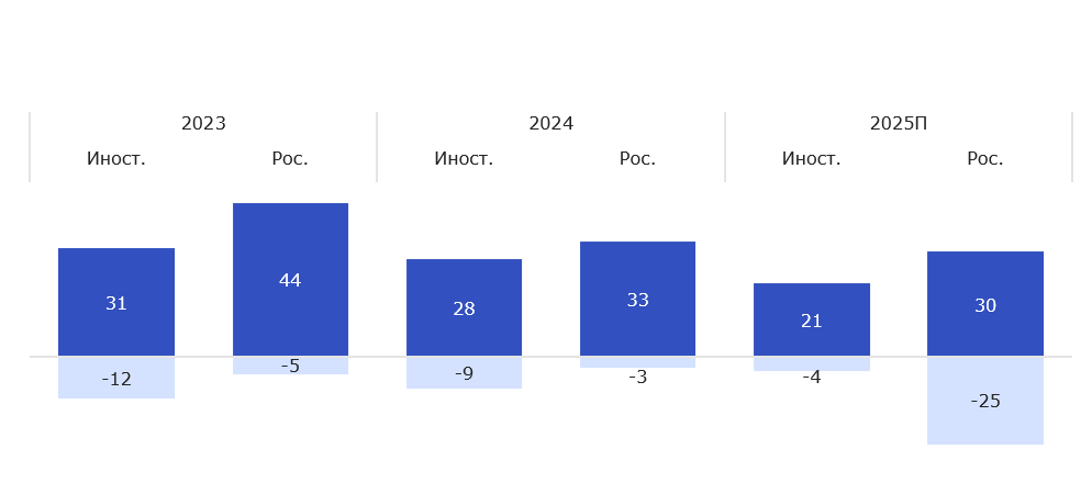 Структура иностранных брендов по стране происхождения, 2025 г.