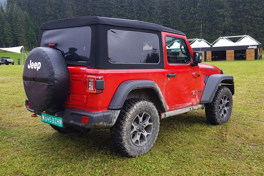 Как и прежде, Jeep можно превратить в багги, сняв двери, крышу и откинув лобовое стекло. Эти операции немного упростились, для крепежа по-прежнему предусмотрено место в багажнике, а рамка стекла вместе с салонным зеркалом заднего вида теперь остается на месте. К мягкому верху и трехсекционному хард-топу присоединился тент с электроприводом.