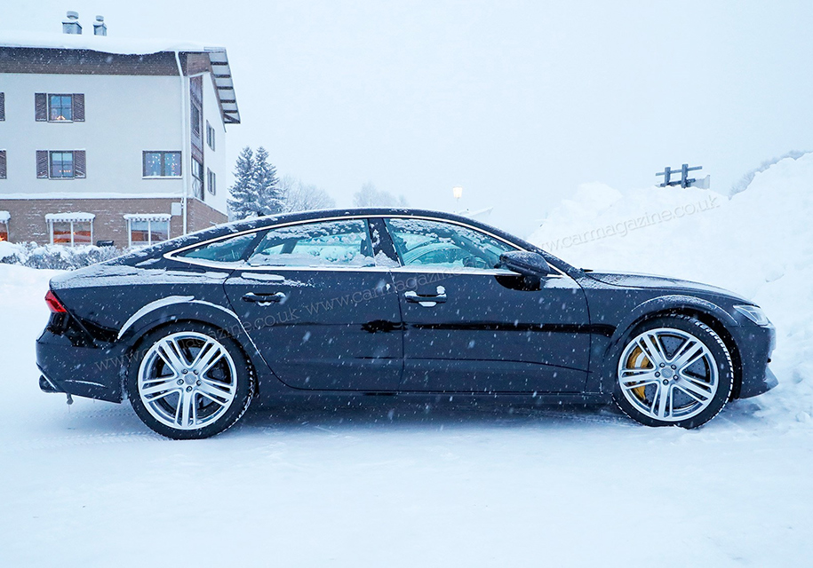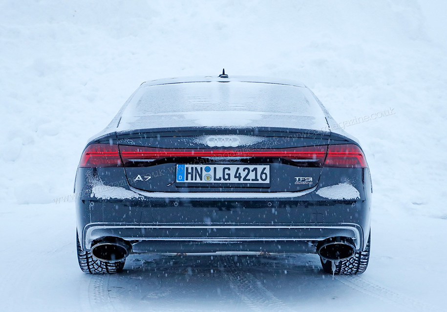 Самый мощный вариант модели тестируется под кузовом обычного Audi A7, но с небольшими отличиями. «Заряженную» машину можно узнать по большим овальным патрубкам выпускной системы, расширенным колесным аркам и огромным карбон-керамическим тормозам с суппортами, которые можно также встретить на суперкарах Lamborghini.